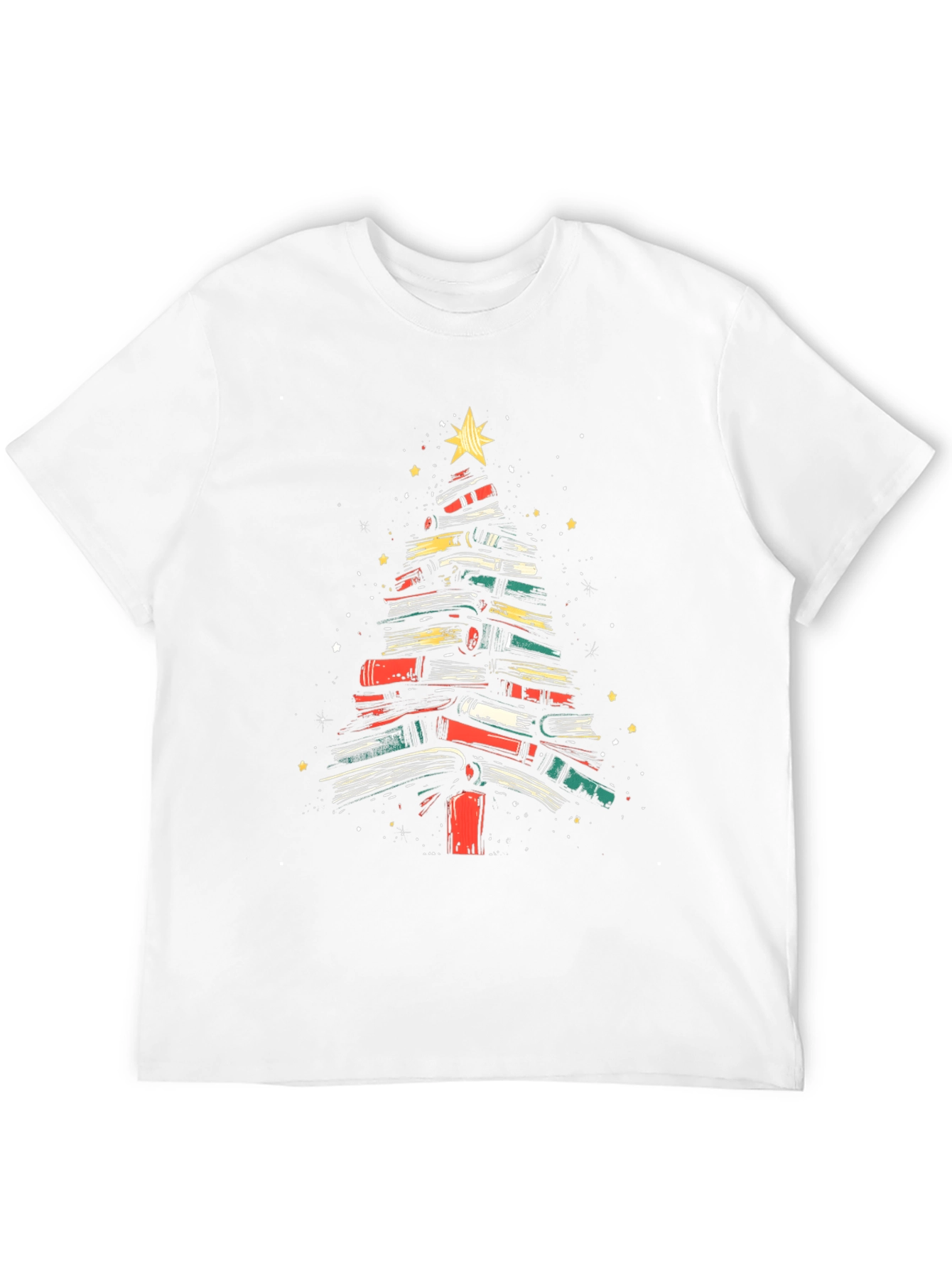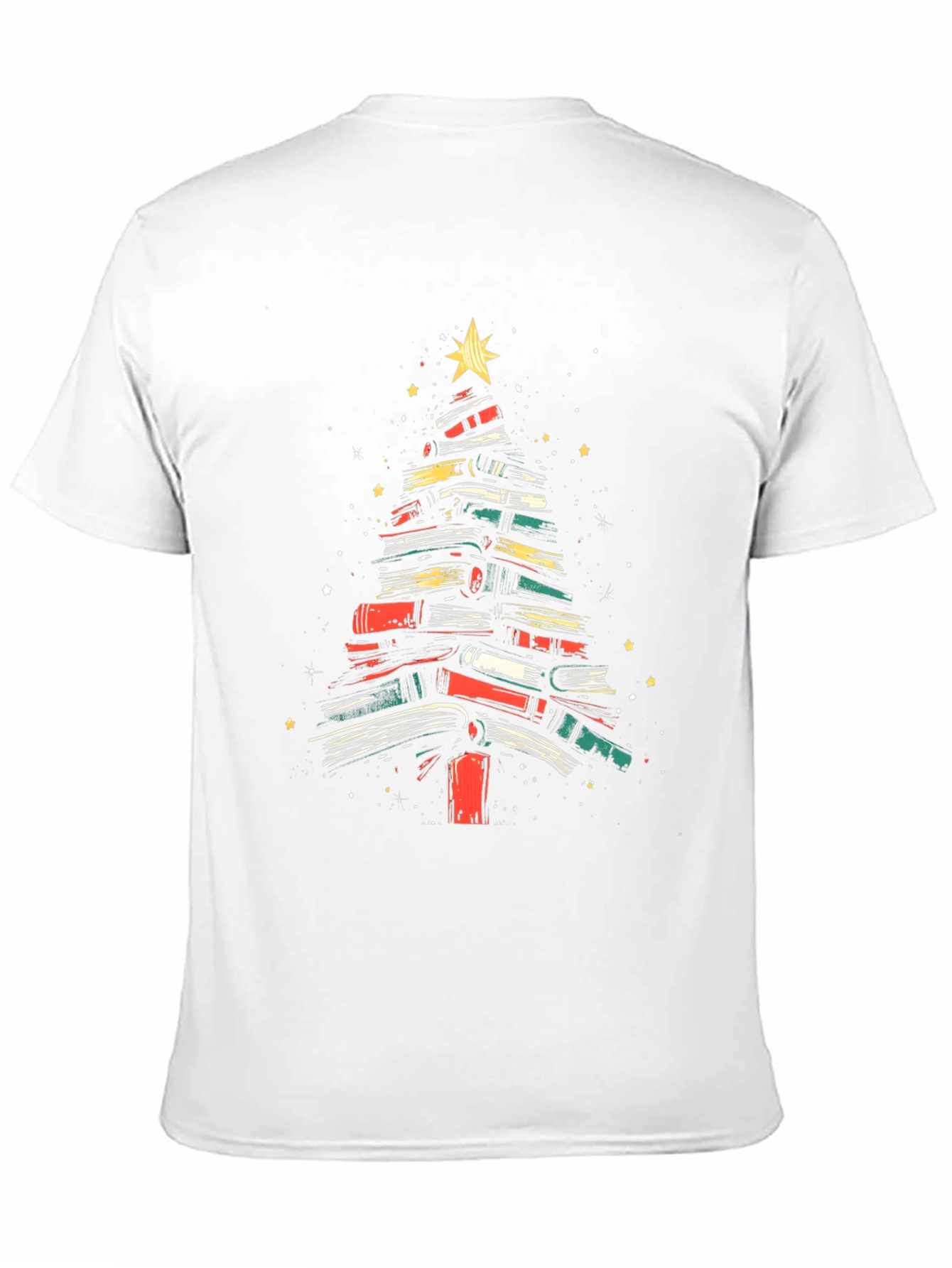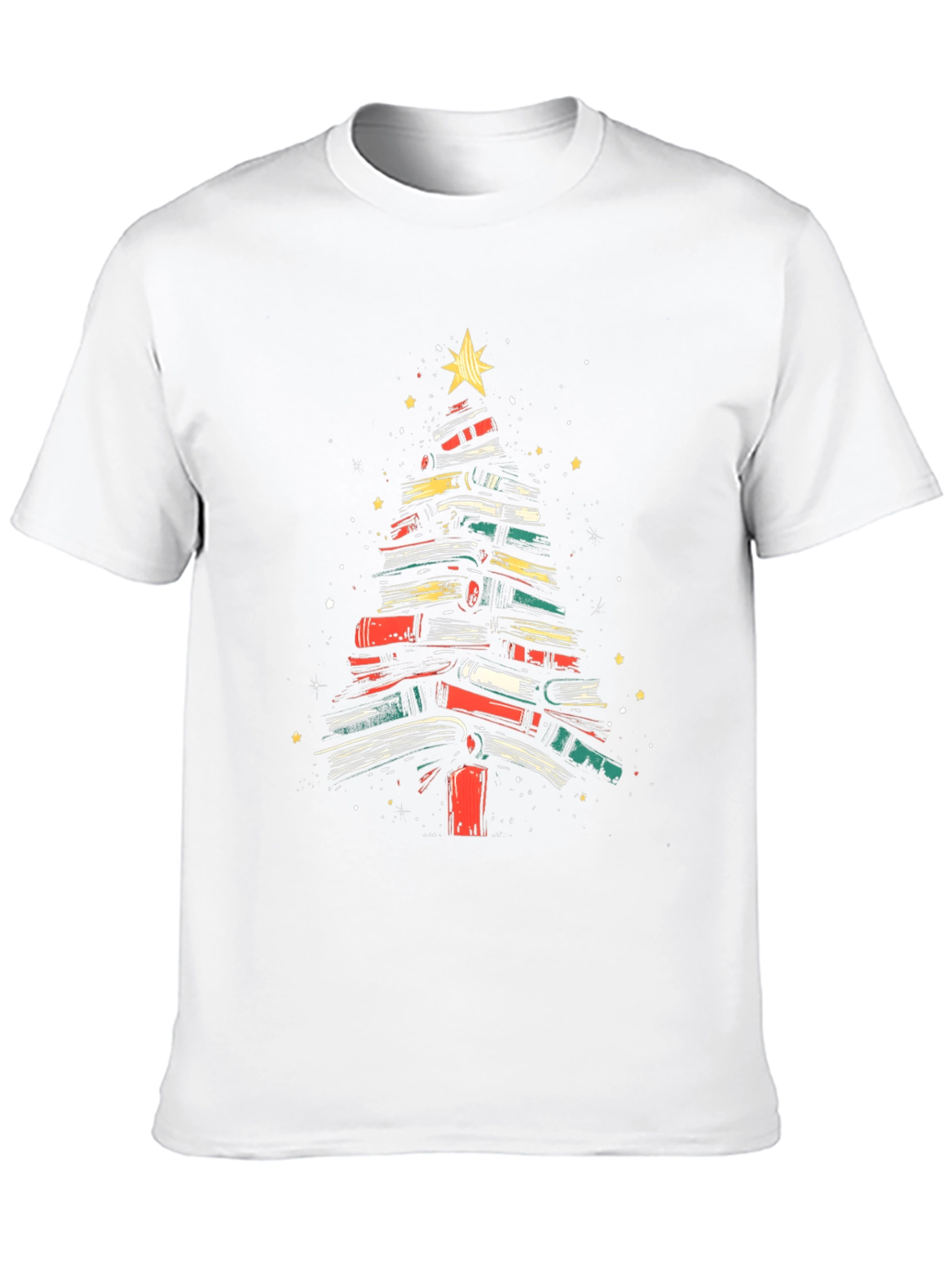 Celebrate the holidays with this unique and stylish black t-shirt. The design features a creative "Christmas tree" made entirely of stacked books, topped with a shining gold star. The vibrant illustration brings a festive touch to your wardrobe, showcasing your love for reading and the holiday season. This soft and comfortable tee is perfect for book lovers, librarians, teachers, or anyone who enjoys a clever and literary twist on traditional holiday apparel. Wear it to your next holiday party, library event, or casual gathering. A thoughtful and fun gift for the bookworm in your life.