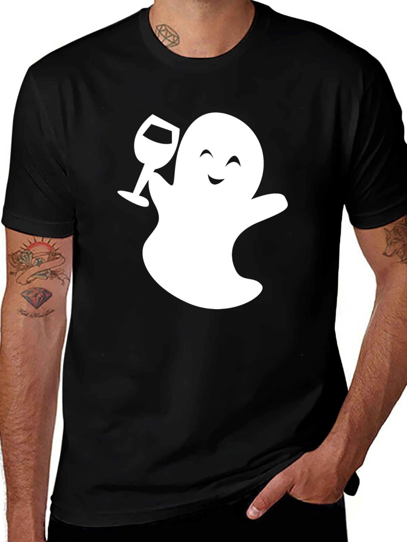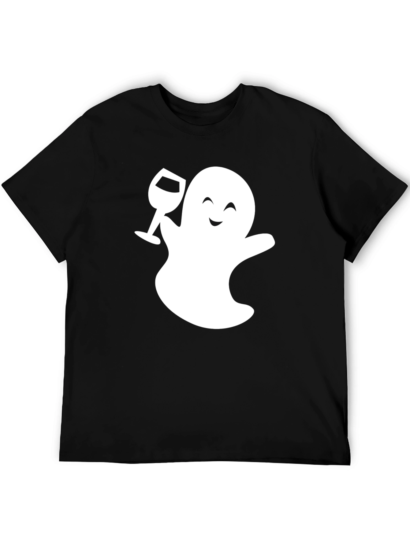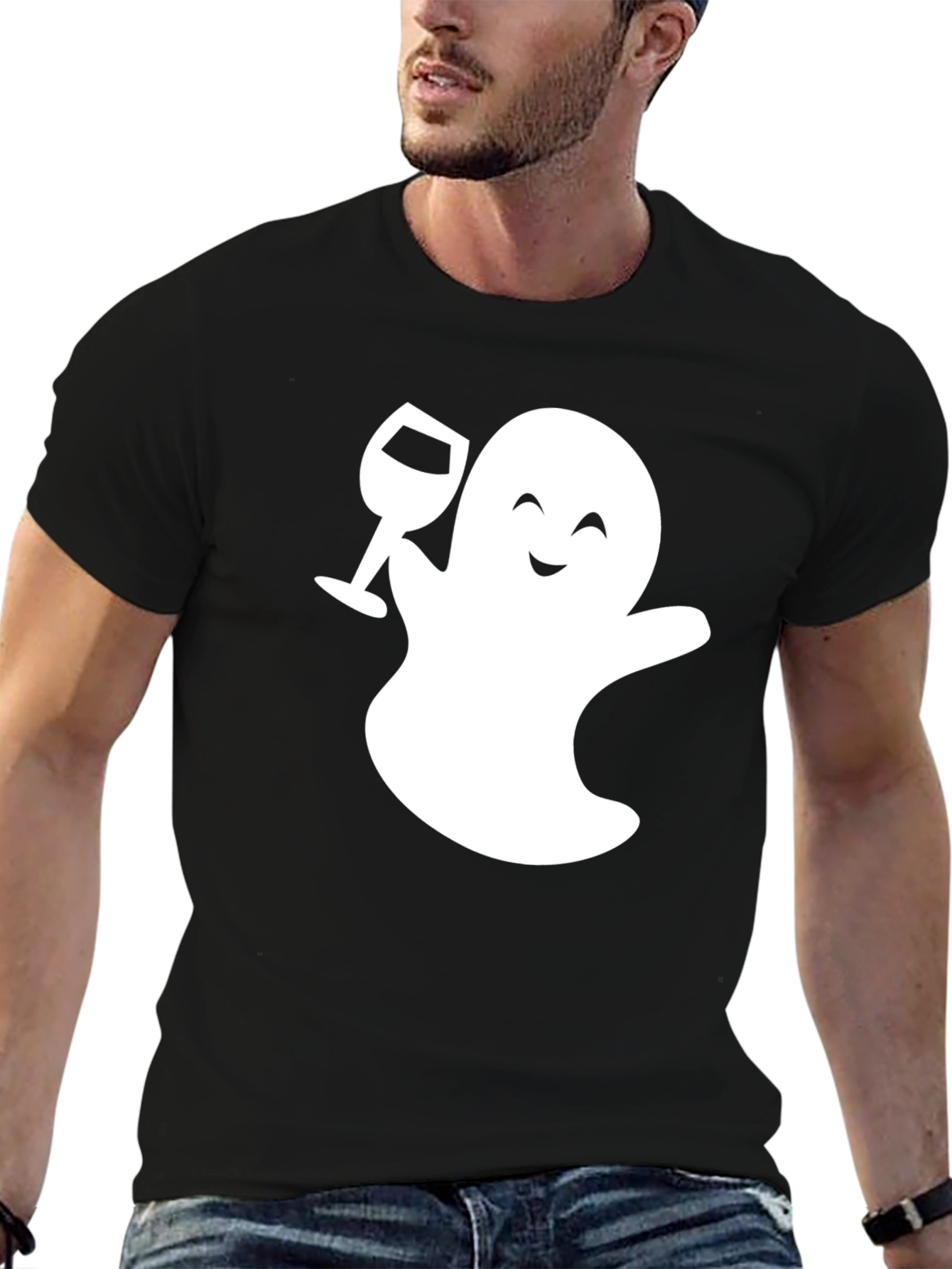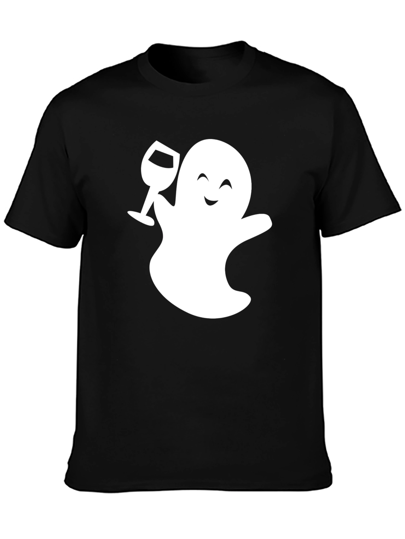 Get spirited with this playful black t-shirt! Featuring a cheerful white ghost graphic holding a wine glass, this tee is perfect for Halloween parties, casual gatherings, or just showing off your fun side. The soft fabric ensures comfortable wear, while the unique design is sure to spark conversations. This shirt is ideal for wine lovers, Halloween enthusiasts, or anyone looking for a quirky and cool addition to their wardrobe. Stand out from the crowd with this one-of-a-kind ghost tee!