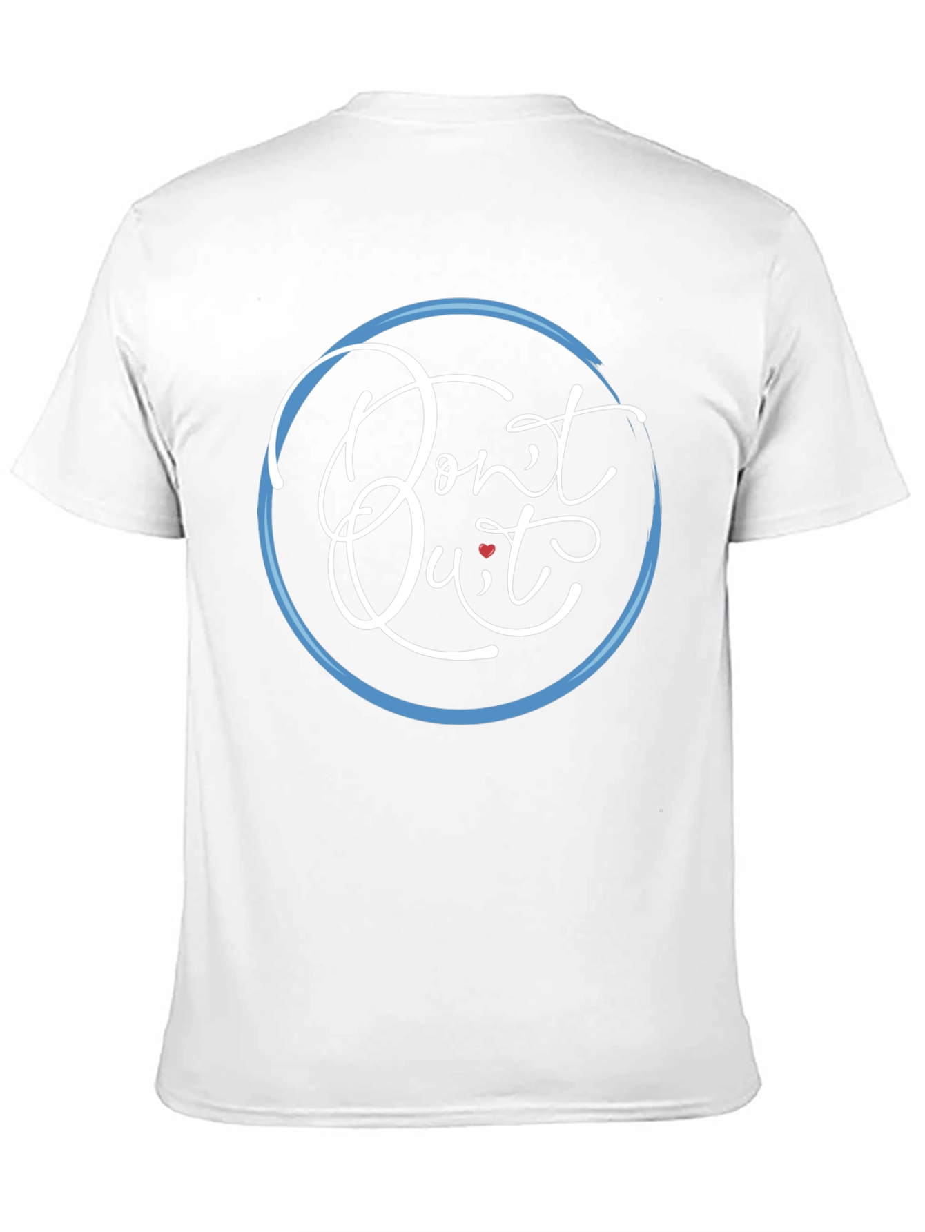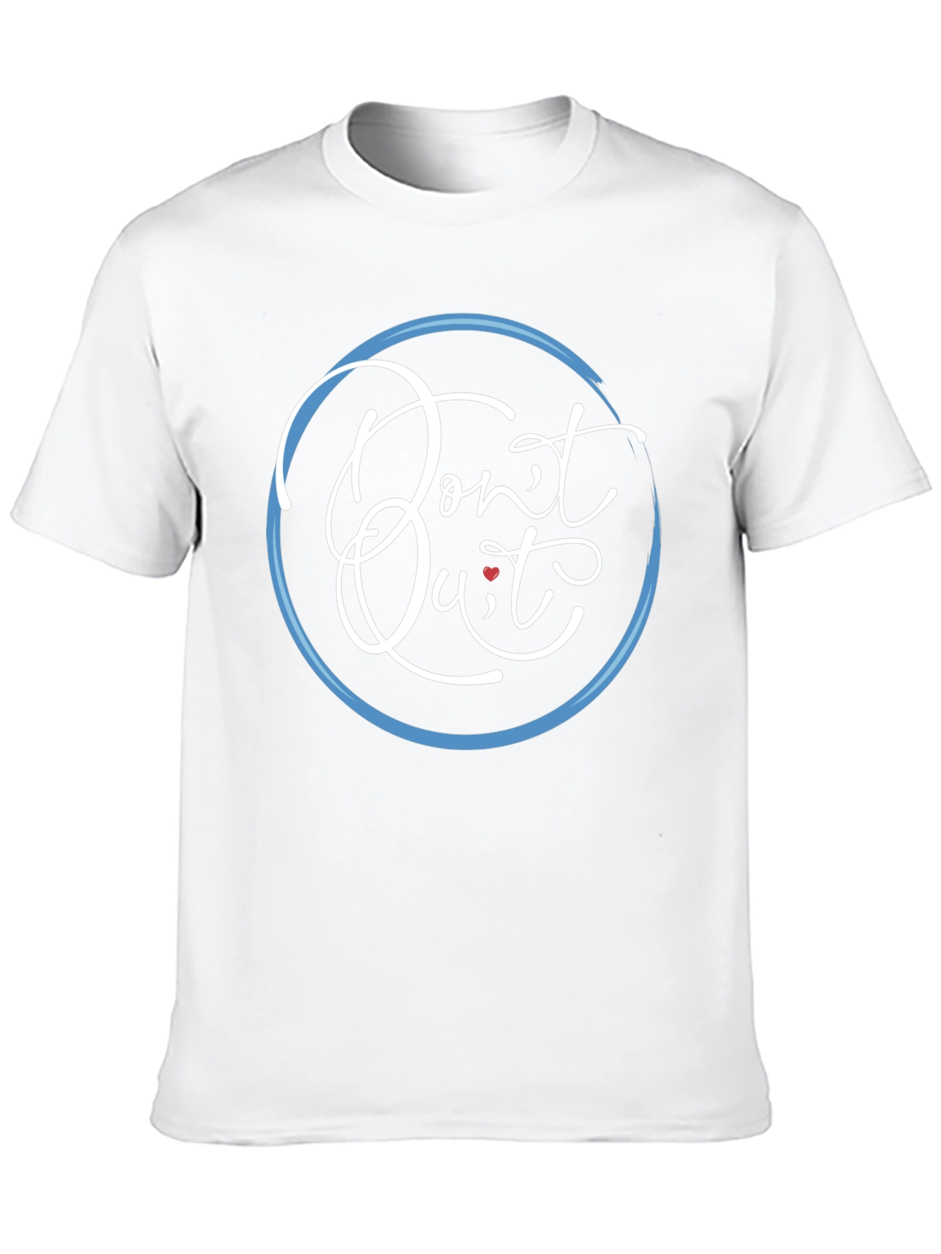 This sleek black t-shirt features an inspiring message, "Don't Quit," artistically rendered in a stylish, looping white script at the center. A delicate heart subtly replaces the dot over the "i" in Quit. The design is framed by a light blue circle, adding a modern touch. The tee's classic fit and versatile color make it an ideal choice for everyday wear, workouts, or casual outings. Its comfortable fabric ensures all-day comfort, while the motivational message encourages a positive mindset. Perfect for those who appreciate understated yet meaningful style. Wear this shirt as a reminder to persevere and stay motivated.
