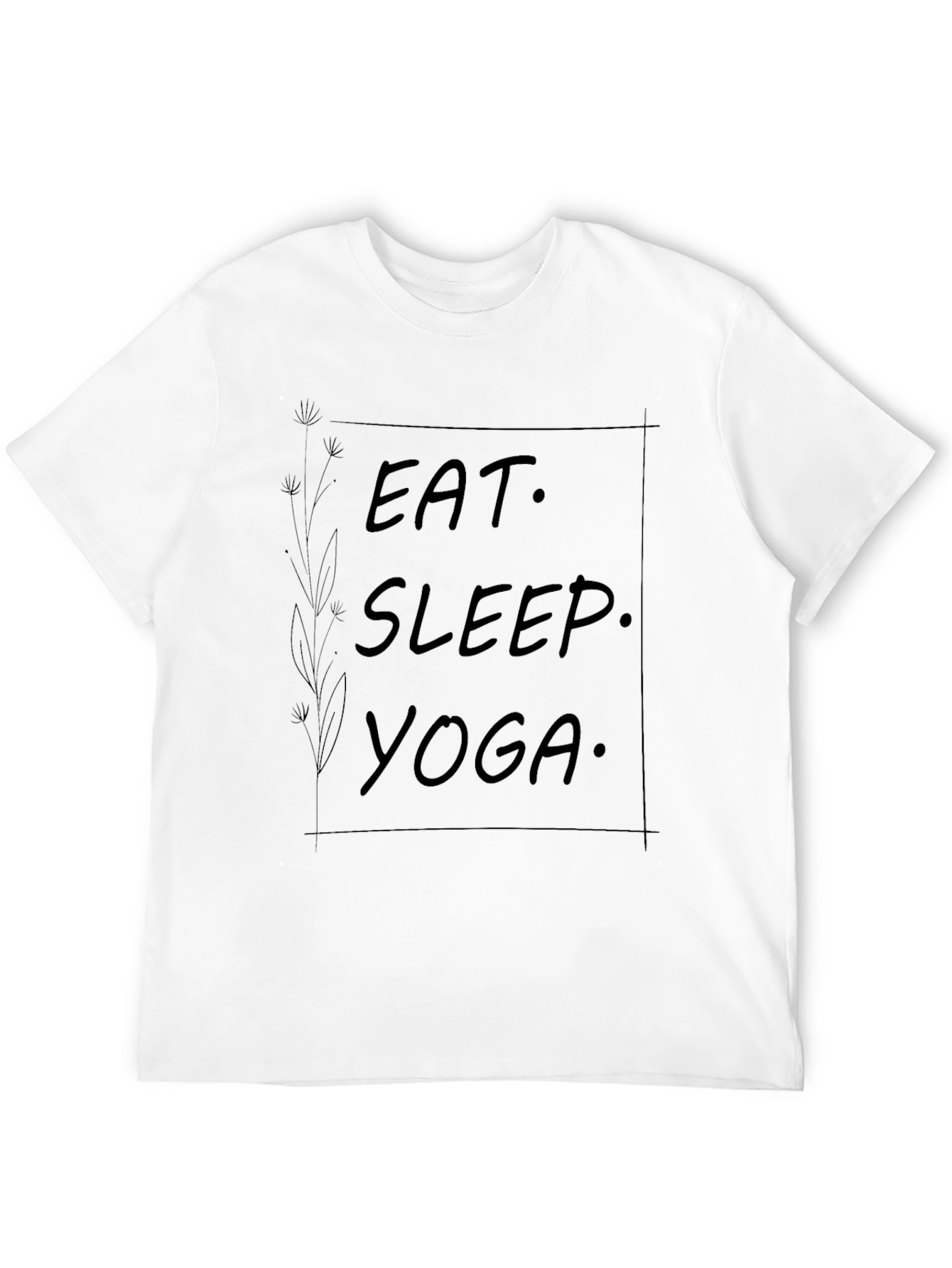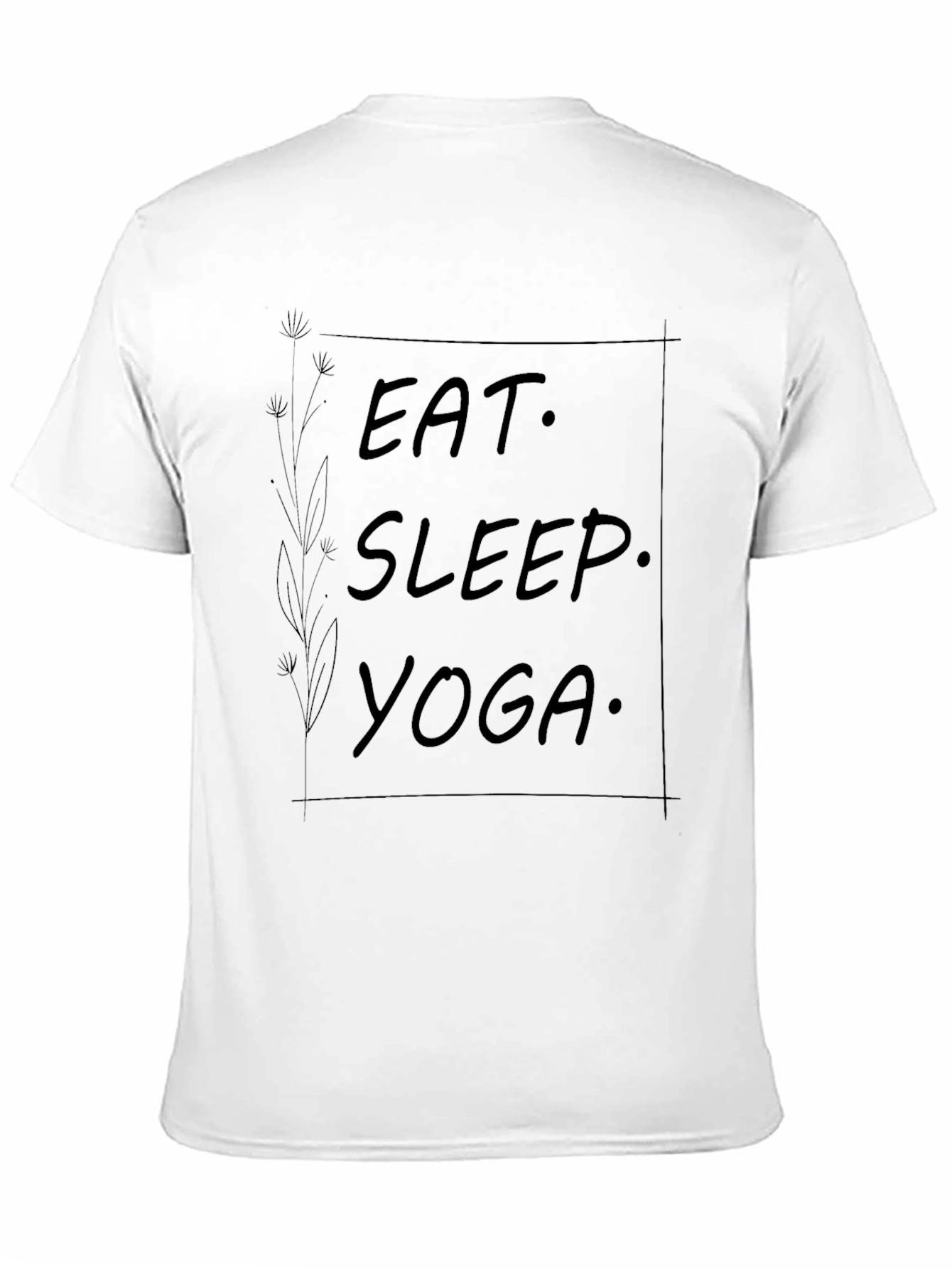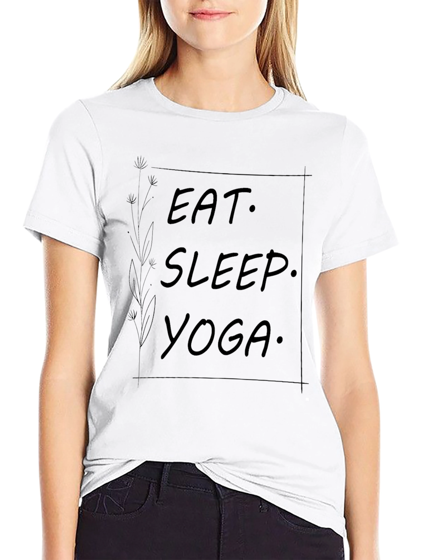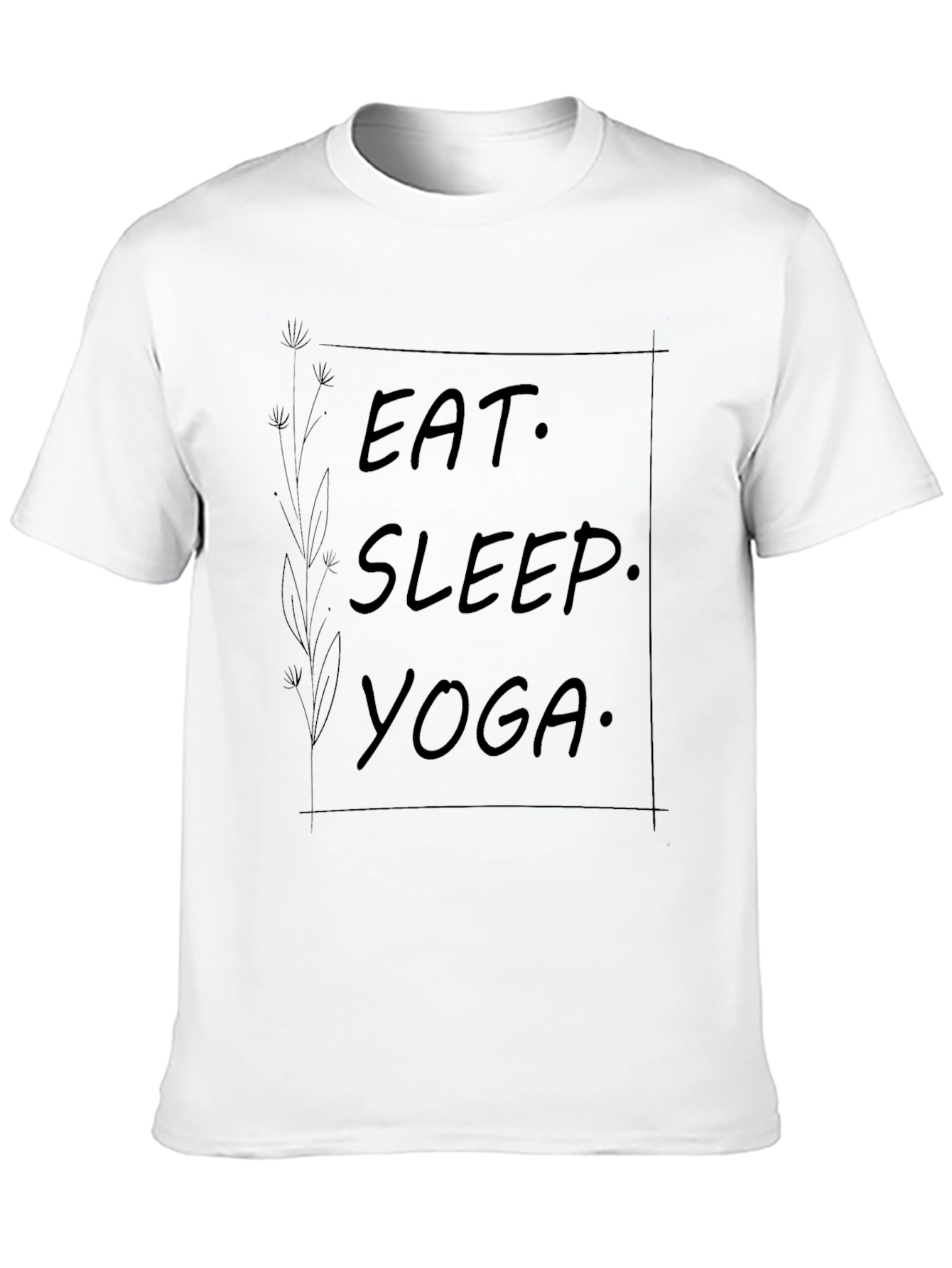 This stylish black tee features a minimalist "Eat Sleep Yoga" graphic, perfect for yoga enthusiasts. The design incorporates subtle floral accents within a clean, rectangular frame, adding a touch of elegance to the casual wear. Made from a soft, comfortable fabric, this unisex t-shirt offers a relaxed fit suitable for daily wear or yoga sessions. The short sleeves and classic crew neck make it a versatile addition to any wardrobe. Whether you're hitting the yoga studio or just looking for a comfortable and stylish everyday shirt, this tee is an excellent choice. The simplicity of the design ensures it pairs well with various outfits, providing a fashionable statement for those who prioritize wellness and comfort. Perfect for gifting to yoga lovers!