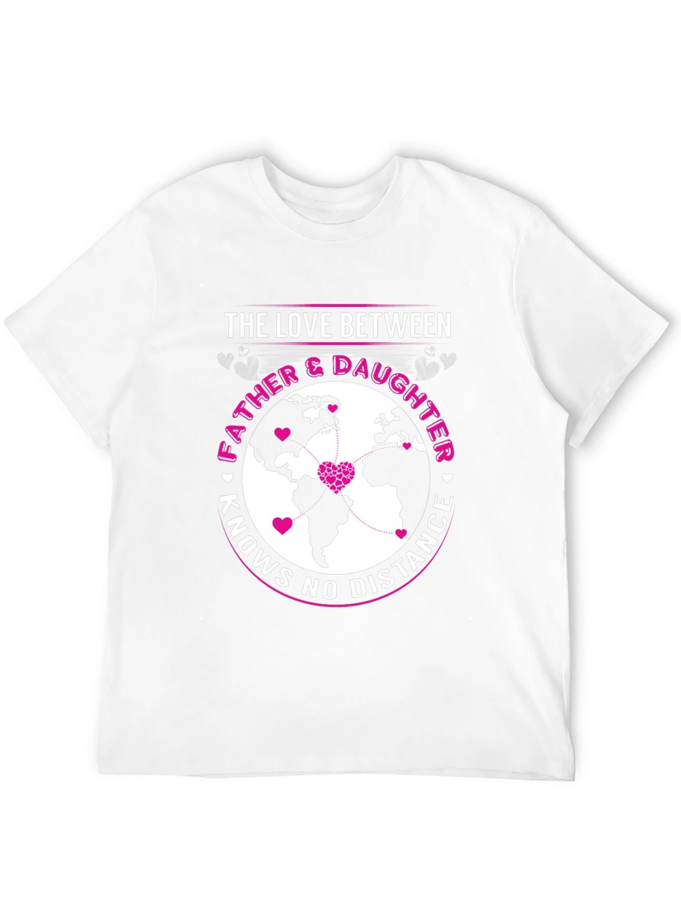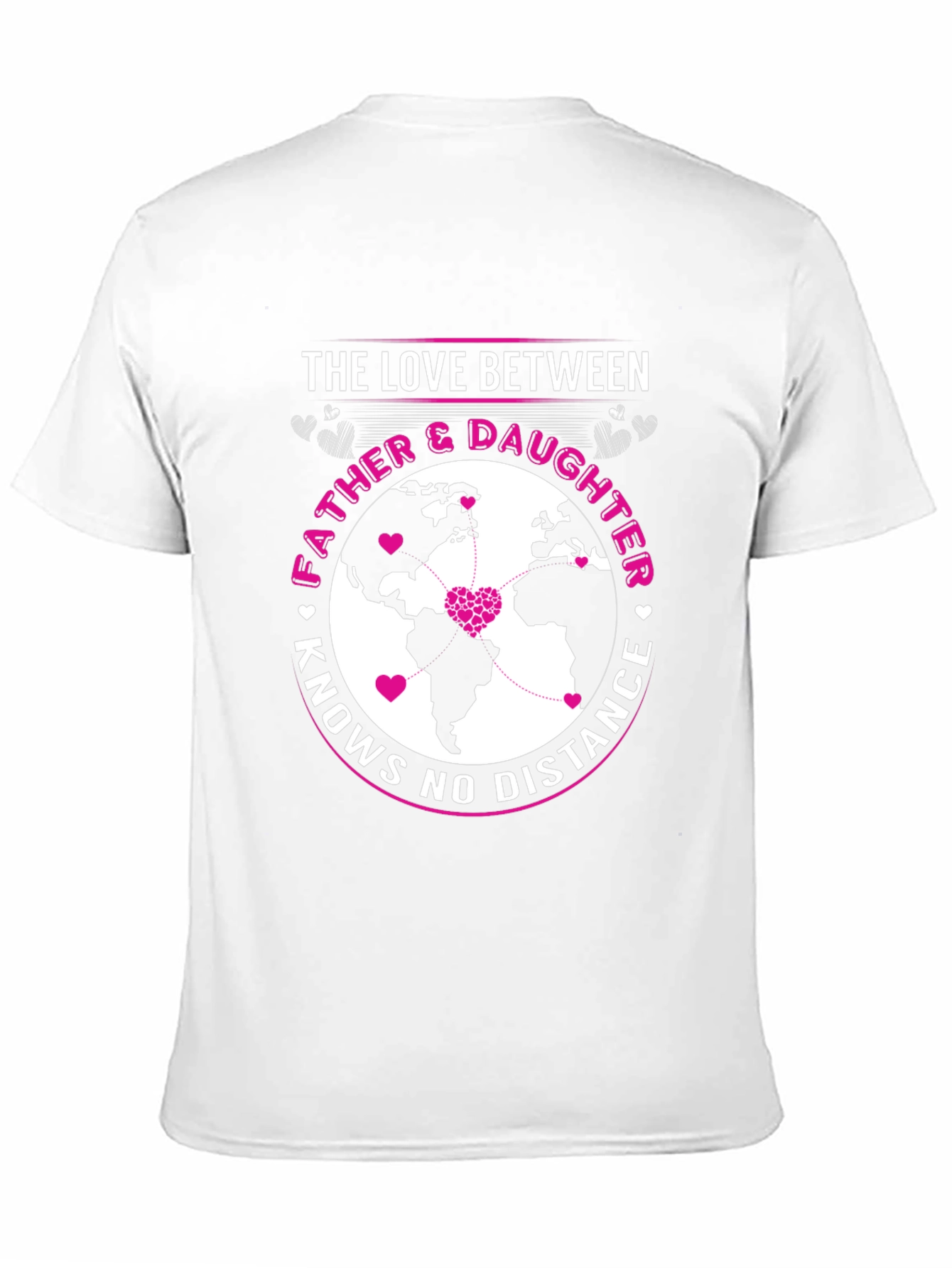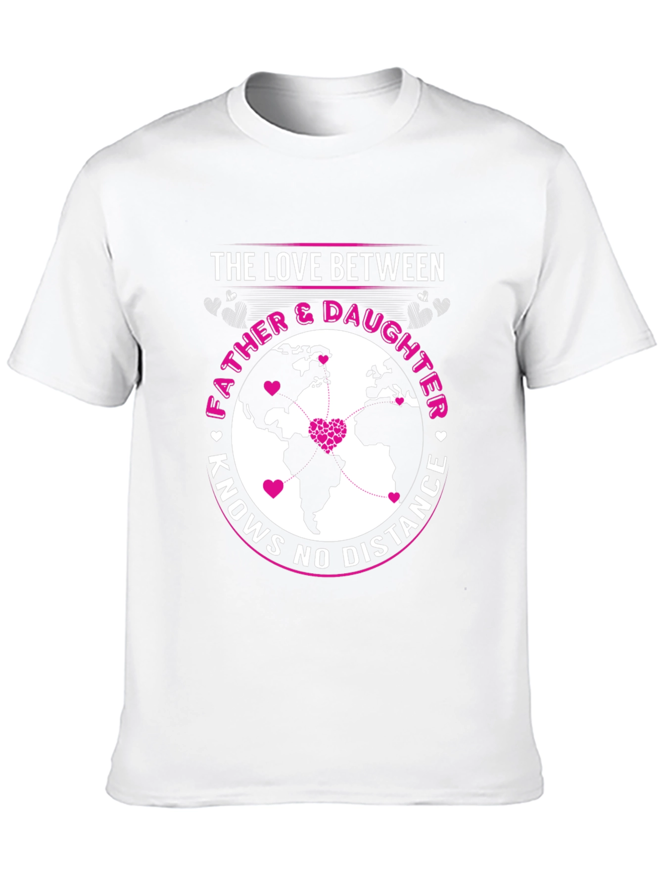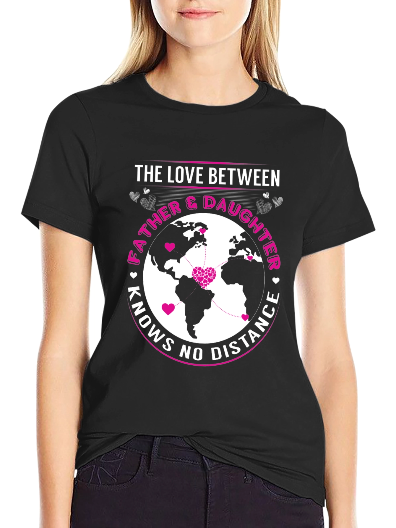 Show the world the special bond between a father and daughter with this stylish black t-shirt. The design features a globe graphic surrounded by pink hearts, highlighting the unbreakable connection across any distance. The phrase 'The love between Father & Daughter knows no distance' expresses the enduring affection. Made from a soft, comfortable fabric, this tee is perfect for casual wear. Whether it's a gift for Father's Day, a birthday, or just to show appreciation, this t-shirt is a meaningful way to celebrate the unique relationship. Wear your heart on your sleeve, or rather, on your chest!