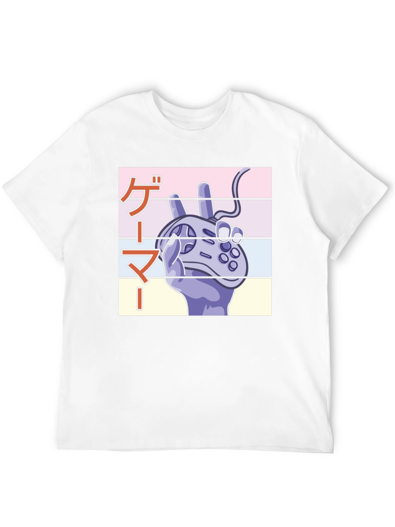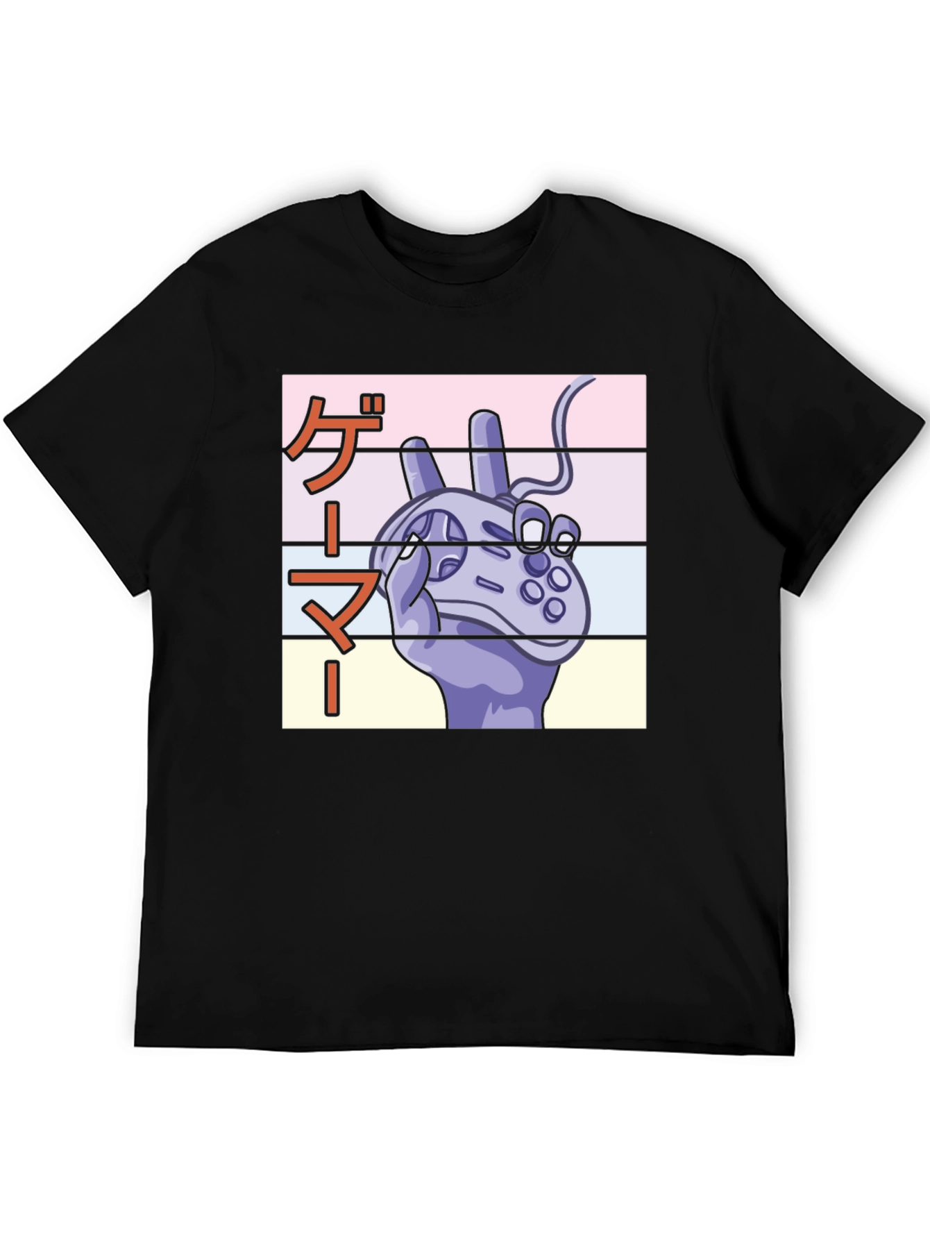 Show off your love for gaming with this unique retro-inspired t-shirt! This eye-catching black tee features a vibrant graphic of a hand holding a classic video game controller. The design incorporates Japanese text elements and a cool color palette, making it a stylish statement piece. Made from comfortable and durable materials, it's perfect for everyday wear, gaming sessions, or casual outings. This gamer t-shirt makes a fantastic gift for anyone passionate about video games and retro aesthetics. Elevate your wardrobe and express your gaming spirit with this standout graphic tee.