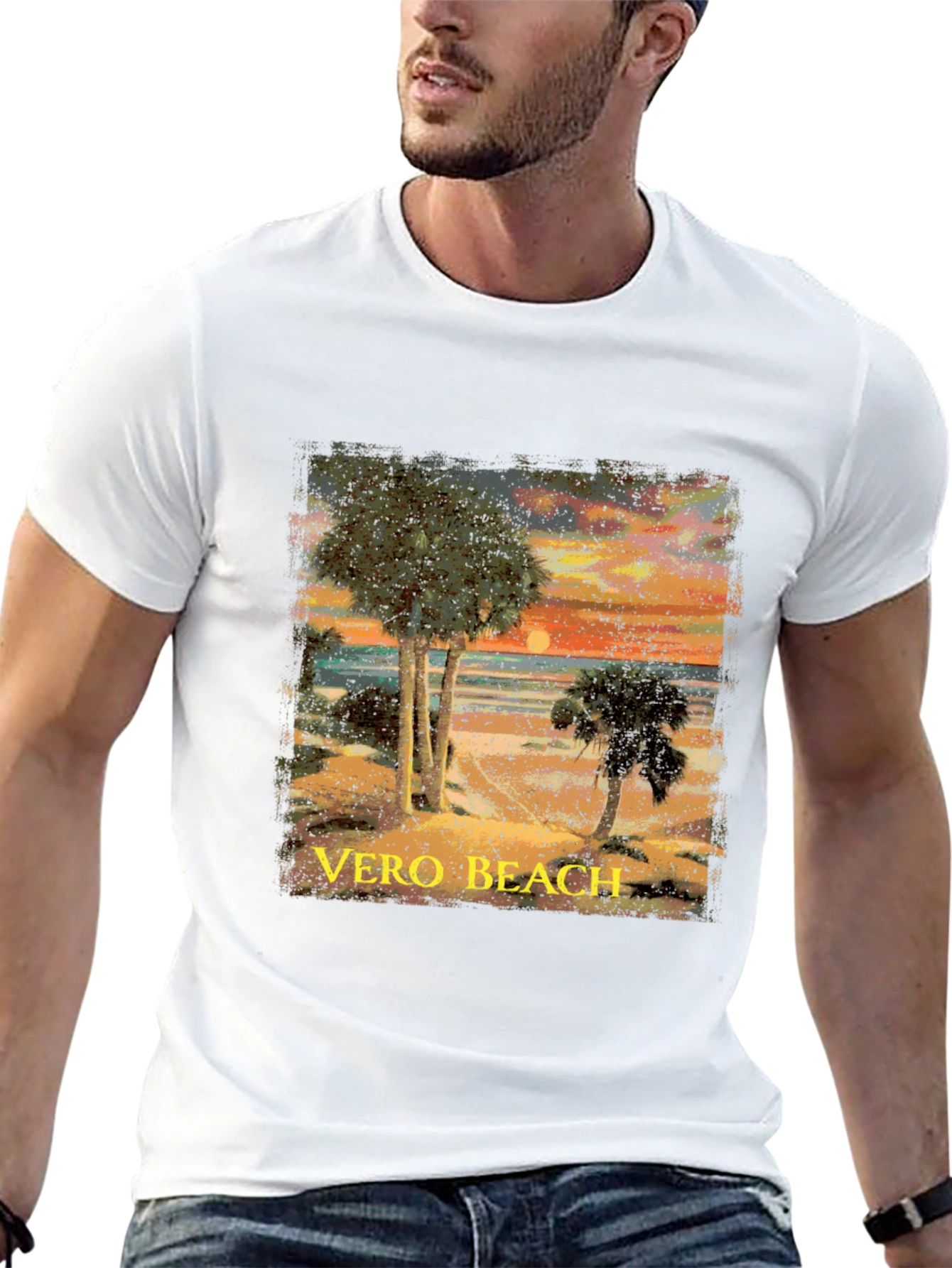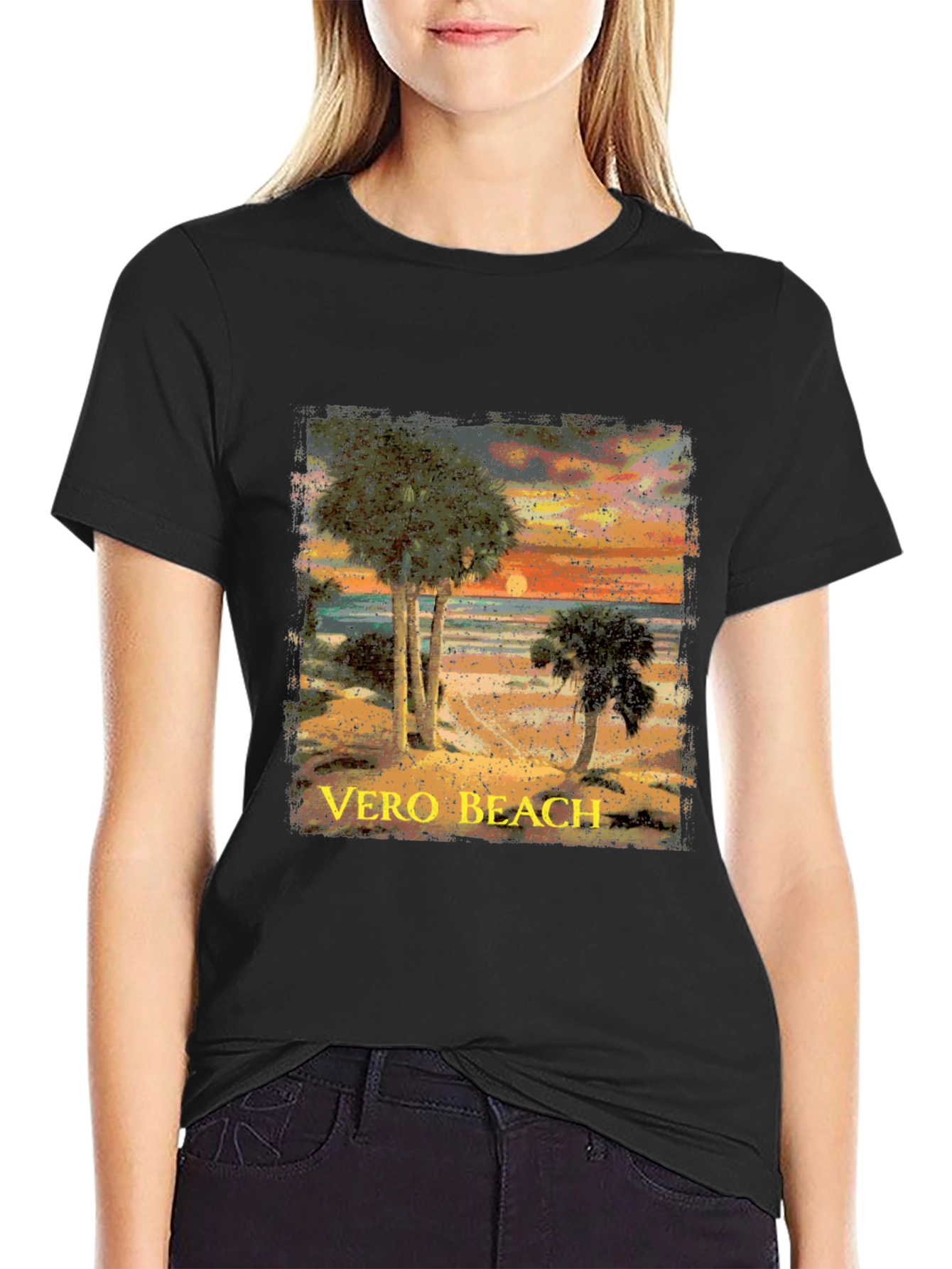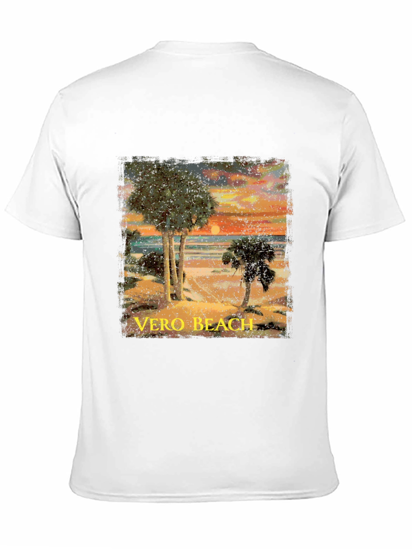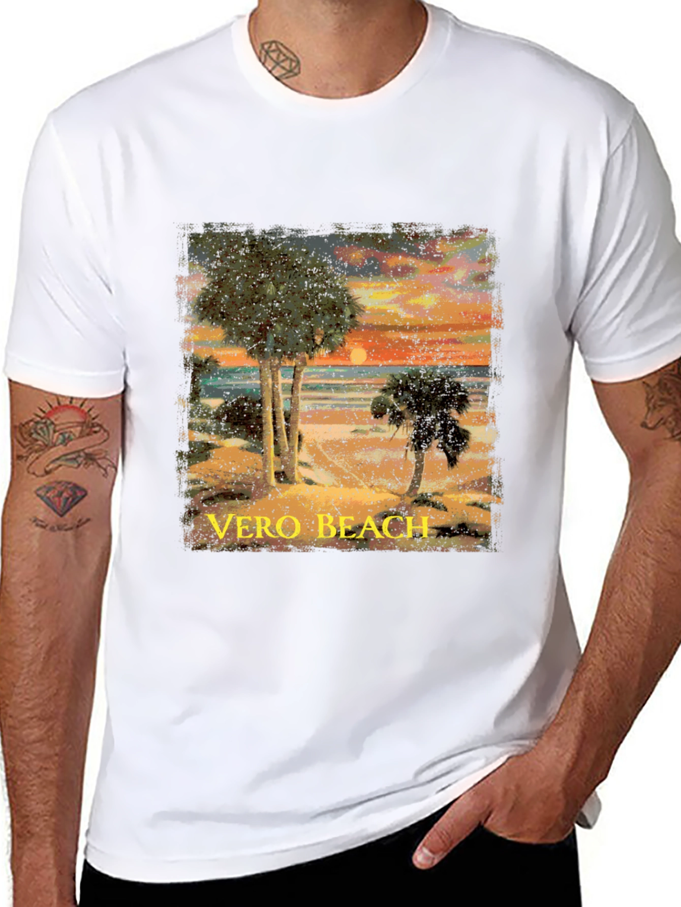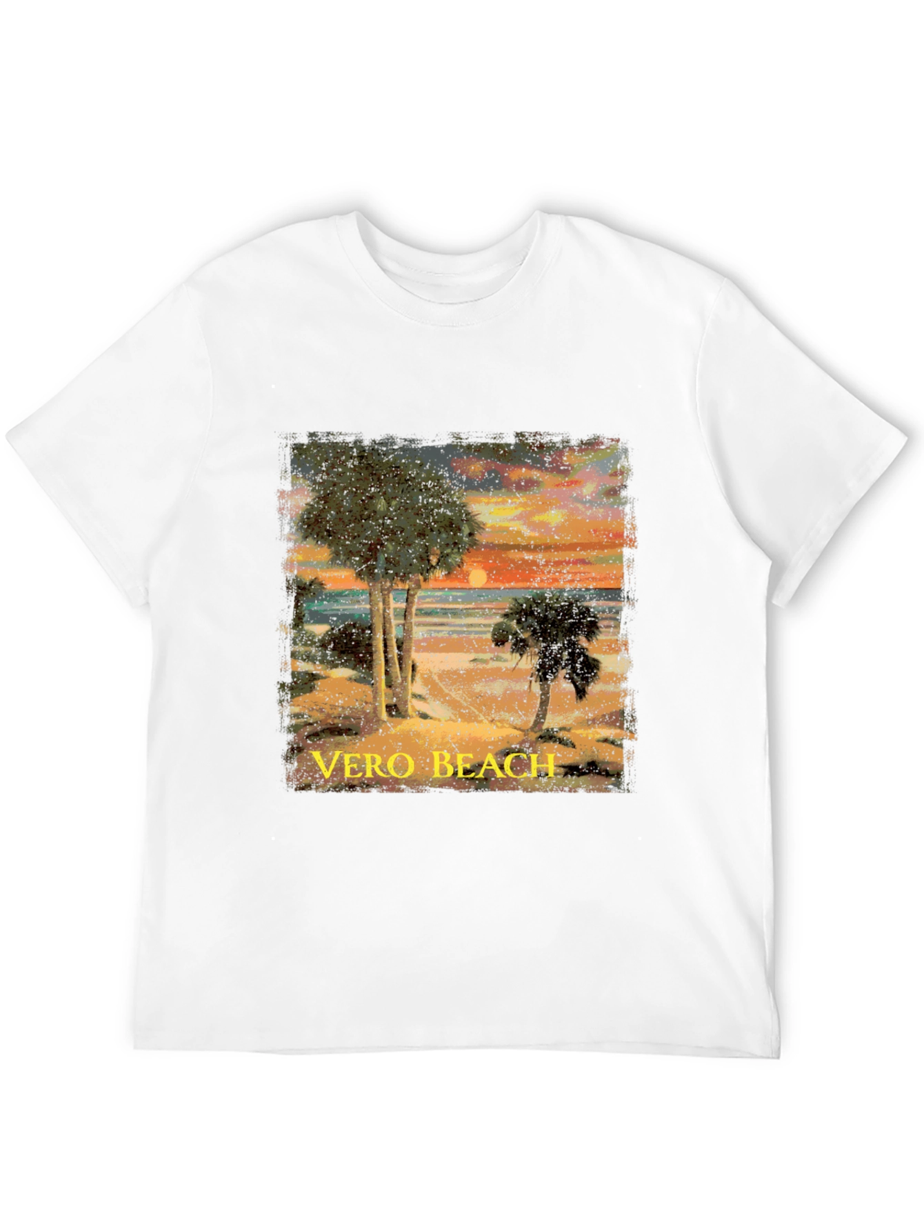 Show off your love for Vero Beach with this stylish black t-shirt! Featuring a vibrant, square-framed graphic of a picturesque Vero Beach sunset scene, complete with palm trees and a shimmering ocean view. The "VERO BEACH" text is displayed prominently across the bottom of the graphic. Made from comfortable, breathable fabric, this tee is perfect for casual wear. Ideal for vacations, beach days, or simply displaying your Florida pride. This classic fit shirt offers ultimate comfort and style. Add a touch of coastal charm to your wardrobe today!
